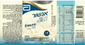 בקבוק אנשור פלוס אדוונס המכיל 330 קק"ל, 20 גק חלבון, כ - 500 מ"ג סידן וויטמין D מותאם לשימוש כהשלמה תזונתית, ללא גלוטן.