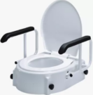 מושב בידה הגבהה לאסלה עם ידיות ומכסה מתכוונן לגבהים שונים ועל פי נוחות המשתמש 5/10/15 ס"מ