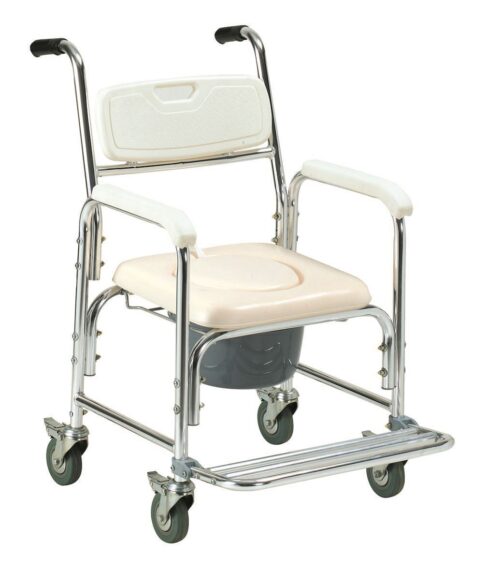 כסא שירותים נוח במיוחד מבית, עשוי אלומיניום.