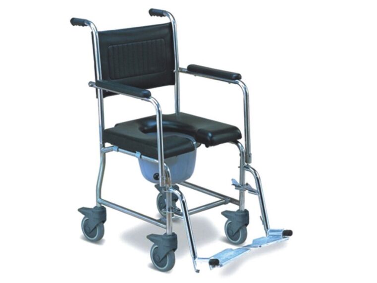 כסא שירותים עם מושב יצוק רך ונוח למשתמש הכסא מגיע עם סיר נשלף , רגליות מתפרקות, 4 גלגלים נוחים מאוד לנסיעה של המטופל הכוללים מעצורים ומשענת יידים מתרוממות בקלות לנוחות מירבית בזמן הרחצה.