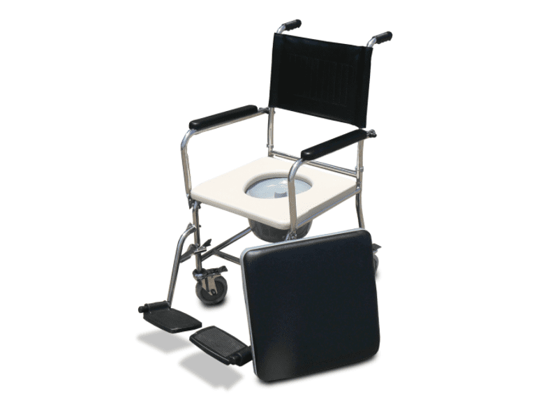 כסא שירותים עם מושב יצוק רך ונוח למשתמש הכסא מגיע עם סיר נשלף , רגליות מתפרקות, 4 גלגלים נוחים מאוד לנסיעה של המטופל הכוללים מעצורים ומשענת יידים מתרוממות בקלות לנוחות מירבית בזמן הרחצה.