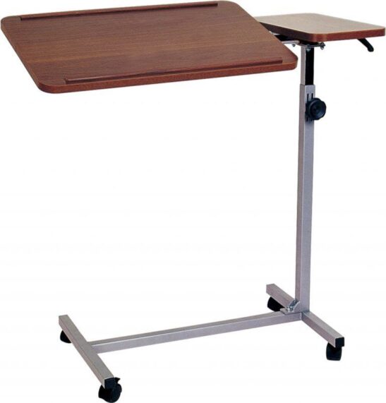 משטח עשוי עץ 60X40 ס"מ בציפוי PVC לבן. נגישות מלאה למיטה היות והשולחן עם רגליות אחת וניתן להכניס את הבסיס מתחת למיטה, כסא או כורסא לנוחות מירבית. שולחן נייד ובעל 4 גלגלים עם מעצורים למניעת תזוזה. כיוונון כפול - לגובה: מ-68 ס"מ עד 100 ס"מ מהרצפה ולזווית משטח ההאכלה. איכותי ביותר עשוי מחומרים נעימים למגע. 12 חודשי אחריות.