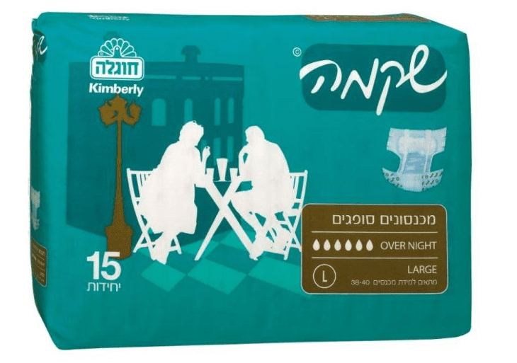 חיתולים למבוגרים שקמה אובר נייט-הספיגה הגבוה ביותר למשך כל הלילה (12 שעות). החיתול היחיד אשר יעניק לעורך רוגע, ותחושת יובש, מגע רך ונעים. כושר ספיגה עד 12 שעות, מונע גירויים בעור ואדמומיות. ניתן לסגירה רב פעמית על ידי מדבקות סגירה ופתיחה איכותיות.