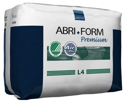חיתולים למבוגרים ABRI FORM L4 מיוצרים על ידי חברת ABENA, החברה המובילה בתחום מוצרי הספיגה באירופה. המוצר בעל כושר ספיגה של 4 ליטר. החומרים הכי איכותיים מהם עשויי החיתול נושמים-אווריריים ואנטיבקטריאליים. מונעים ריחות וגירויים בעור על ידי הפיכת הנוזלים לג'ל.